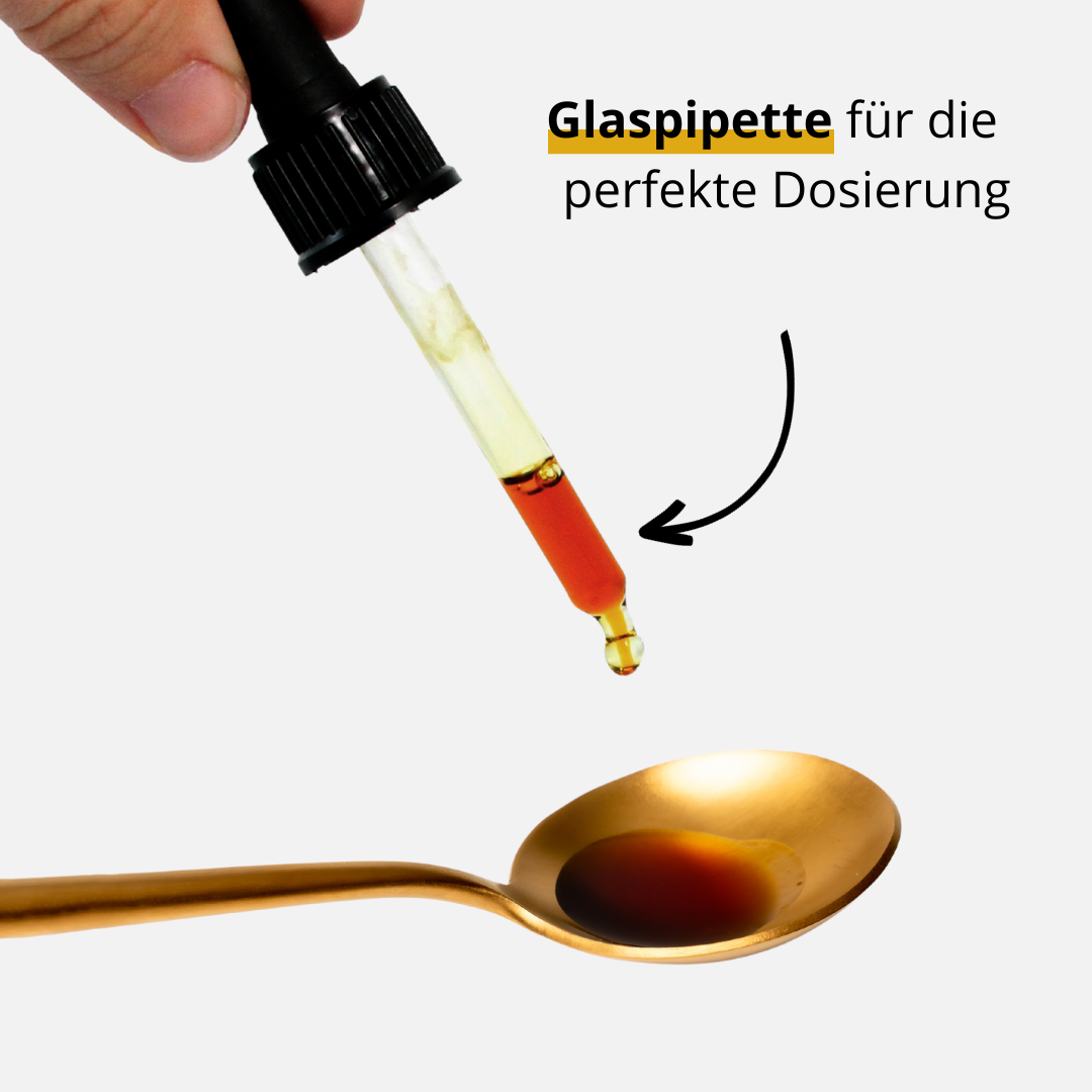 Die praktische Glaspipette ermöglicht eine präzise Dosierung. Gerade bei hochkonzentrierten Tinkturen ist die exakte Tropfenanzahl entscheidend. Das Braunglas schützt die lichtempfindlichen Inhaltsstoffe und bewahrt die Qualität über die gesamte Verwendungsdauer.