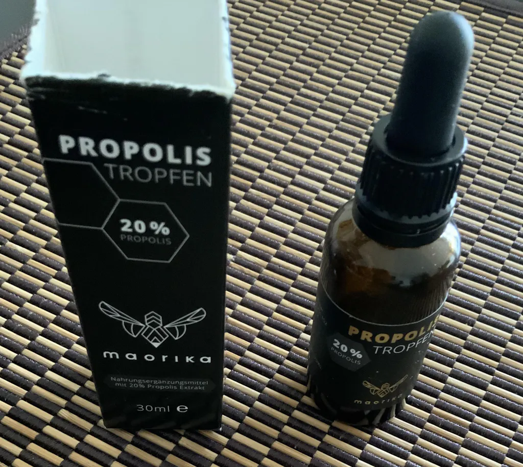 Personen mit bekannter Allergie gegen Bienenprodukte, Harze oder Perubalsam sollten von einer Anwendung absehen. Wir empfehlen vor der ersten Verwendung einen Verträglichkeitstest: Geben Sie einen Tropfen in Ihre Armbeuge und beobachten Sie die Stelle 24 Stunden lang. Zeigt sich keine Reaktion, ist die Verträglichkeit in der Regel gegeben.Beachten Sie, dass die intensive Farbe zu Verfärbungen auf Haut und dauerhaften Flecken auf Textilien führen kann. Eine vorsichtige und gezielte Handhabung ist daher empfehlenswert.
